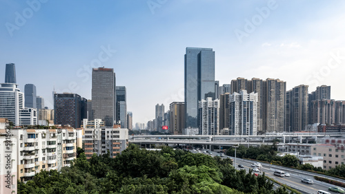 Aerial photography of urban roads on both sides of the Pearl River in Guangzhou, China