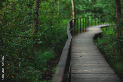 Aerial summer view of West Kotlin state nature reserve, ecological path trail with bird watching tower, Kotlin island, Kronstadt, Saint-Peterburg, Russia