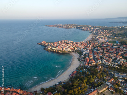 Aerial sunset view of old town of Sozopol, Bulgaria