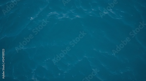 Aerial top view of ocean water surface with gentle waves in deep blue color