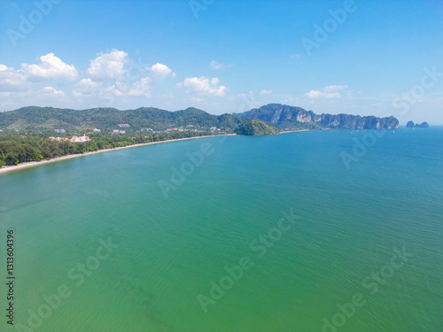 Aerial view of stunning coastline at Railay Beach, Krabi, Thailand