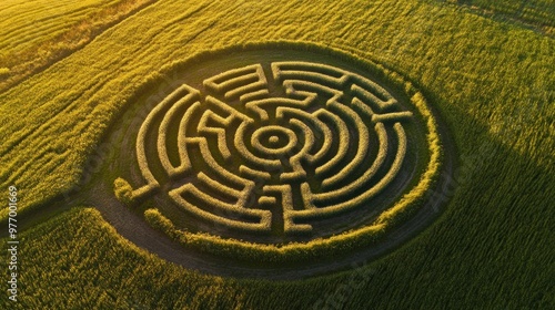 Aerial View of a Circular Crop Maze
