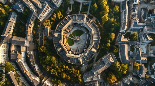 Aerial View of a Circular Fortress in Autumn. AI Generated