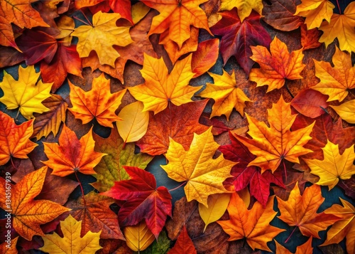 Aerial view of a colorful autumn leaf ground, ideal for seasonal designs and presentation templates with ample copy space.