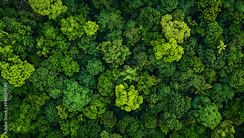 Aerial view of a dense green forest, a background for an ecology concept. Sustainability net zero carbon negative concept.