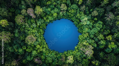 Aerial View of a Secluded Blue Lake Nestled in a Lush Green Forest