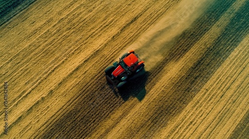 Aerial view of a tractor working a field.