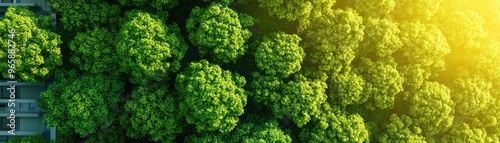 Aerial view of an urban development with sustainable buildings, using eco-friendly materials and green infrastructure