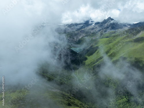 Aerial view of beautiful high altitude grassland mountain landscape