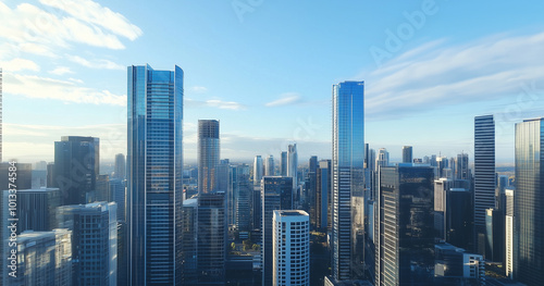 Aerial View of City Skyline and Skyscrapers Under Blue Sky and White Clouds
