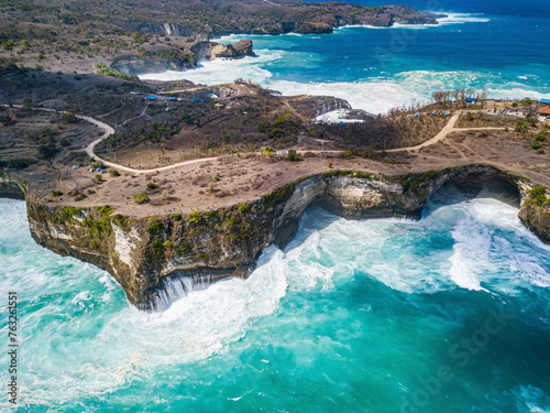 Aerial view of coastal rocks, Sakti, Klungkung, Bali, Indonesia.
