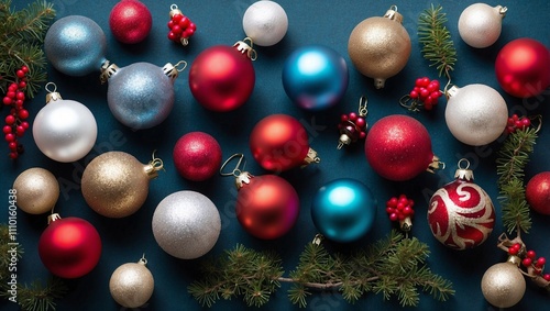 Aerial View of Colorful Christmas Ornaments