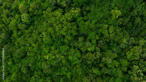 aerial view of dark green forest Abundant natural ecosystems of rainforest. Concept of nature forest preservation and reforestation