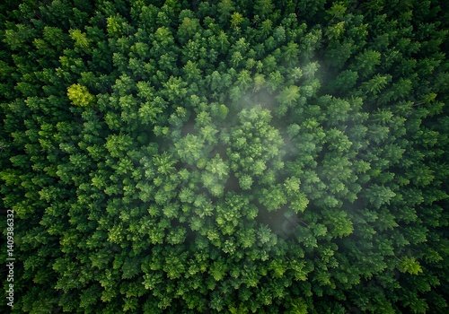 Aerial View of Dense Green Forest Canopy with Lush Tree Tops