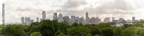 Aerial View of Downtown Austin With Cloudy Skies From the Suburbs