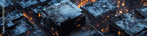 Aerial View of Fire-Damaged Cuboid Buildings