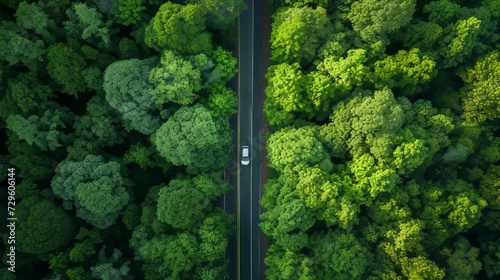 Aerial view of forest road, Healthy ecosystem and environment concept and background. Generative Ai