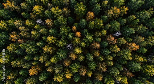 Aerial View of Forest with Colorful Autumn Trees