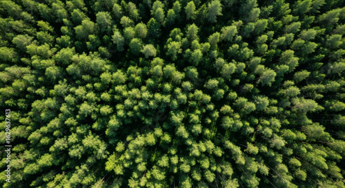 Aerial view of green forest in summer. Clean Environment and Sustainable concept. Forest reduce carbon emissions and clean air. A clean and sustainable environment stops global warming