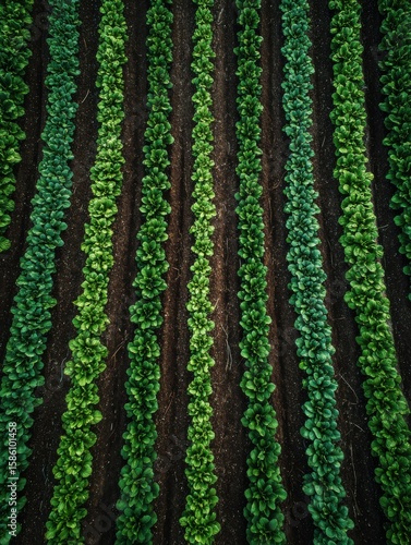 Aerial View of Healthy Green Vegetable Rows Growing in Rich Soil