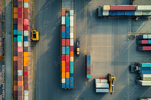 Aerial View of Large Industrial Depot with Cargo and Containers