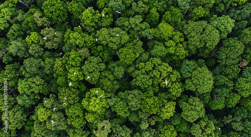 Aerial View of Lush Green Canopy, Dense Forest Texture