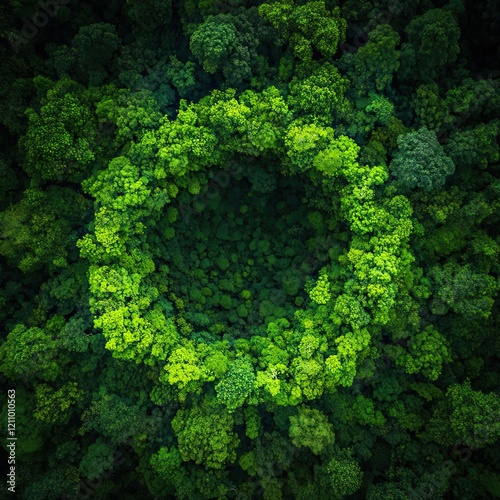 Aerial View of Lush Green Forest Canopy Forming a Circle