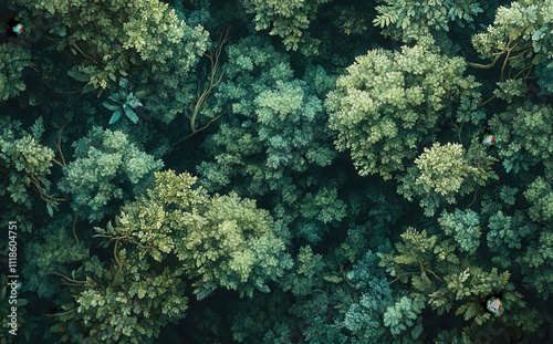 Aerial View of Lush Green Forest Canopy with Varying Shades of Green and Dense Foliage Creating a Rich and Vibrant Natural Environment