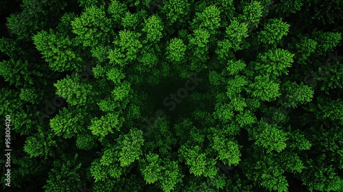 Aerial view of lush green trees forming a circular pattern, showcasing the beauty of nature and vibrant forest landscapes.