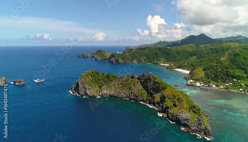 Aerial view of lush tropical coastline