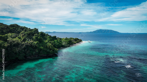 Aerial view of Nosy Tanikely island in Madagascar showcasing crystal-clear waters and lush greenery