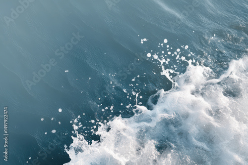aerial view of ocean water surface with splashing droplets dynamic movement of water