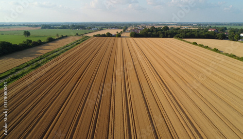 Aerial View of Prepared Soil for Planting Crops in Flat Landscape