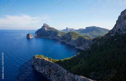 Aerial view of sea with rocky cliffs
