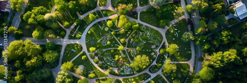 Aerial View of Serene Public Park: Green Haven in an Urban Landscape