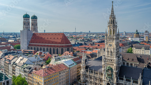 Aerial view of the Munich town hall, Bavaria, Germany, neo-Gothic building