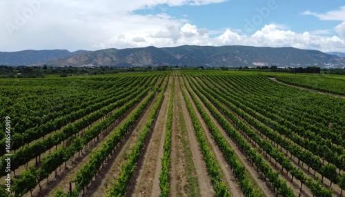 Aerial View of Vineyard Rows in Lush Green Landscape