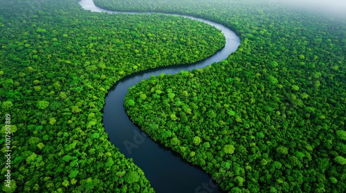 Aerial View of Winding River Through Lush Amazon Rainforest Canopy