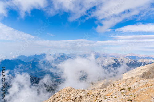 aerial view, view of the peaks of the Taurus Mountains, blue sky and clouds