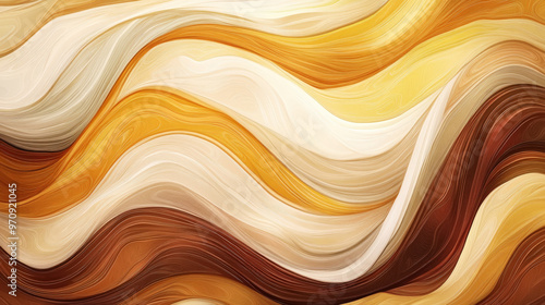 Aesthetic wavy dynamic background. Rich brown, golden yellow, white, and beige colors. Banner template. Generative AI