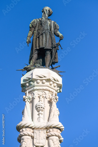 Afonso de Albuquerque Square and Monument (1902) in the Belem District, Lisbon, Portugal. Architecture in neo-Manueline style.