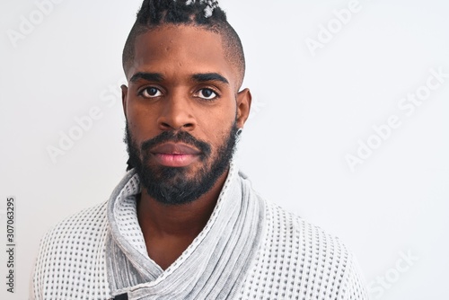 African american man with braids wearing grey sweater over isolated white background with a confident expression on smart face thinking serious