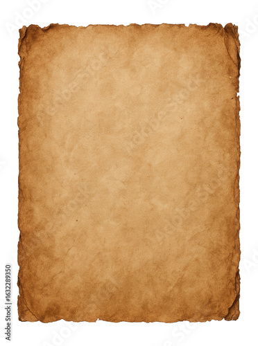 Aged parchment paper with textured edges creating an antique and vintage appearance on transparent background.