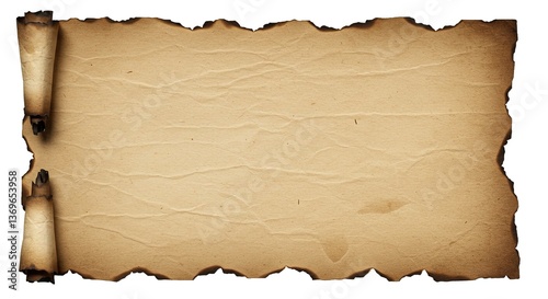 Aged Parchment with Burnt and Torn Paper, Isolated in PNG