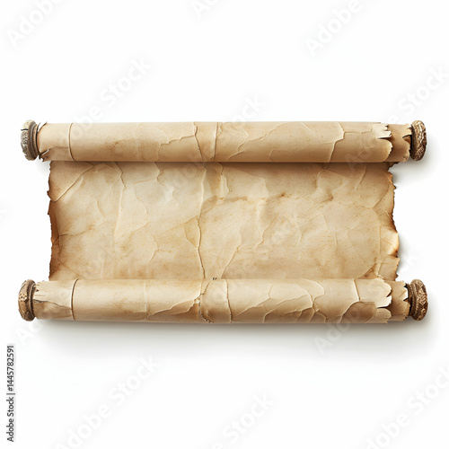 Aged Scroll with Rustic Texture and Worn Edges on White Background
