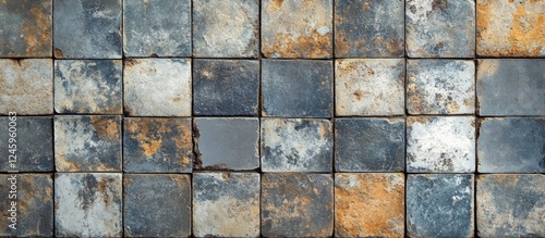 Aged Tile Texture with Unique Color Variations and Rustic Surface for Background Use