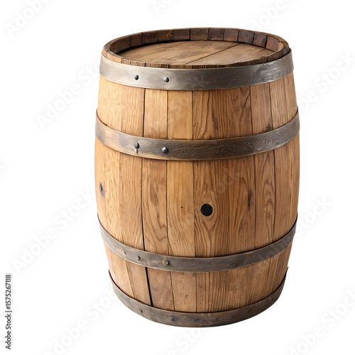 Aged Wooden Barrel with Metal Bands A Rustic Container isolated on transparent baackground