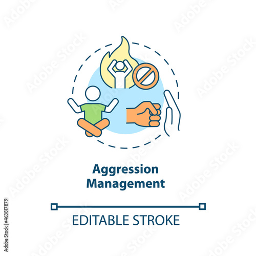 Aggression management concept icon. Parenting tip for ADHD abstract idea thin line illustration. Teaching kid to manage negative emotions. Vector isolated outline color drawing. Editable stroke
