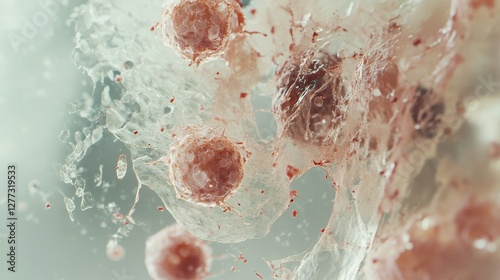 Aging cells observed under a microscope in a research lab. Featuring cellular decay and fragmentation