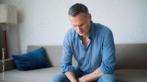 Agonizing struggle: man endures ache from prostate issue, urinary tract distress, genital irritation, bacterial source, medical urgency, physical torment, masculine ailment, chronic discomfort,